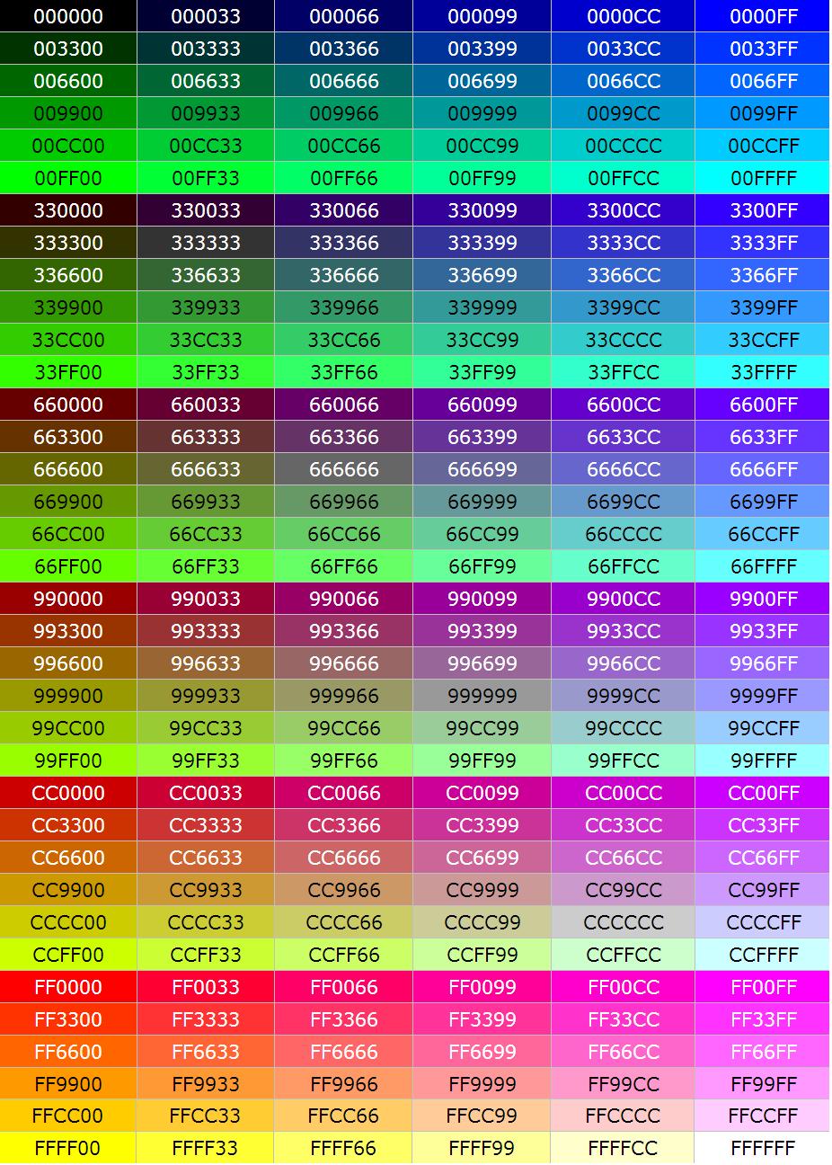 如圖所示為網頁安全色大全。