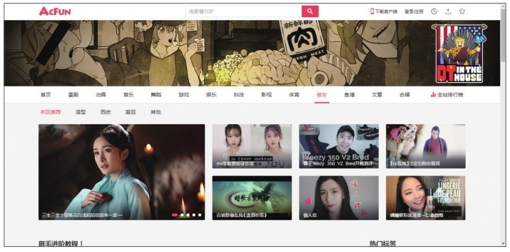 (4)標(biāo)識系統(tǒng)是負責(zé)網(wǎng)站信息名稱的定義與表述,如對標(biāo)題、圖形、索引項、導(dǎo)航等標(biāo)識的標(biāo)引名稱、標(biāo)簽及描述。如Acfun網(wǎng)站導(dǎo)航(見圖1)中“彼女”的意思就是“她或女朋友”。