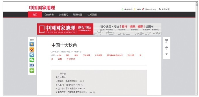 圖5 中國國家地理雜志網(wǎng)站專題頁面