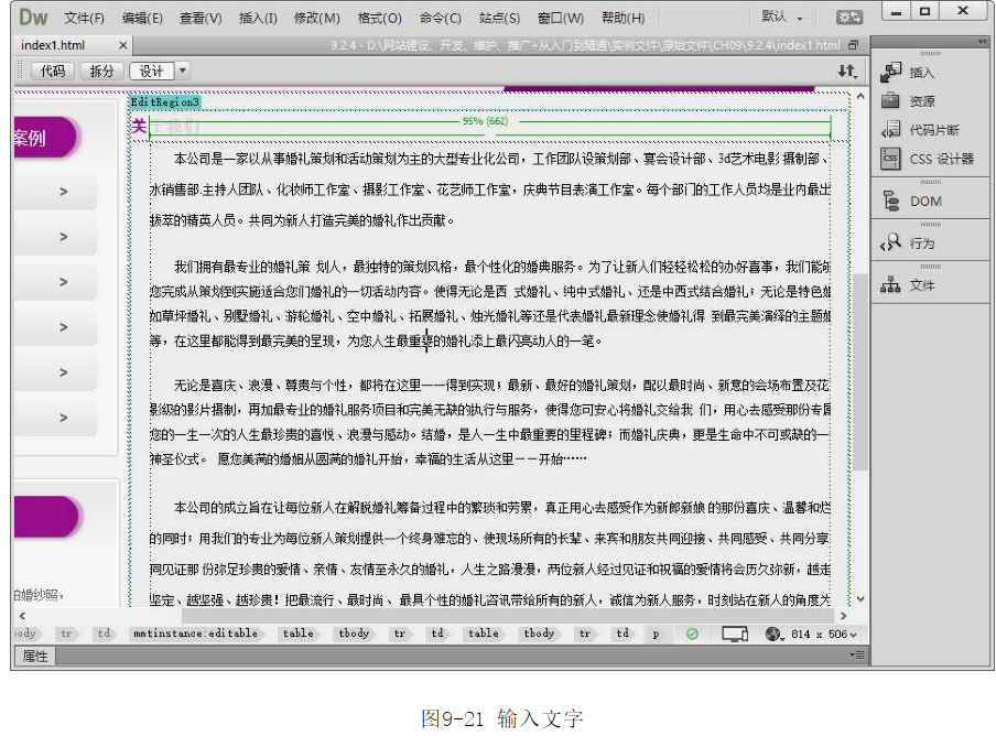 ?選擇菜單中的【文件】|【保存】命令,保存文檔,按F12鍵即可在瀏覽器中預(yù)覽效果,如圖9-24所示。