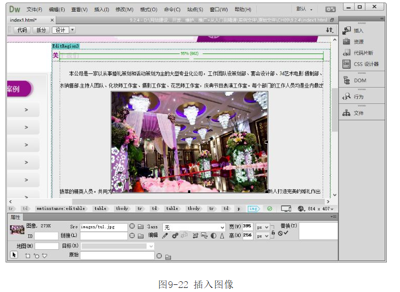 ?將光標(biāo)置于文字中,選擇菜單中的【插入】|【圖像】命令,插入圖像,如圖9-22所示。