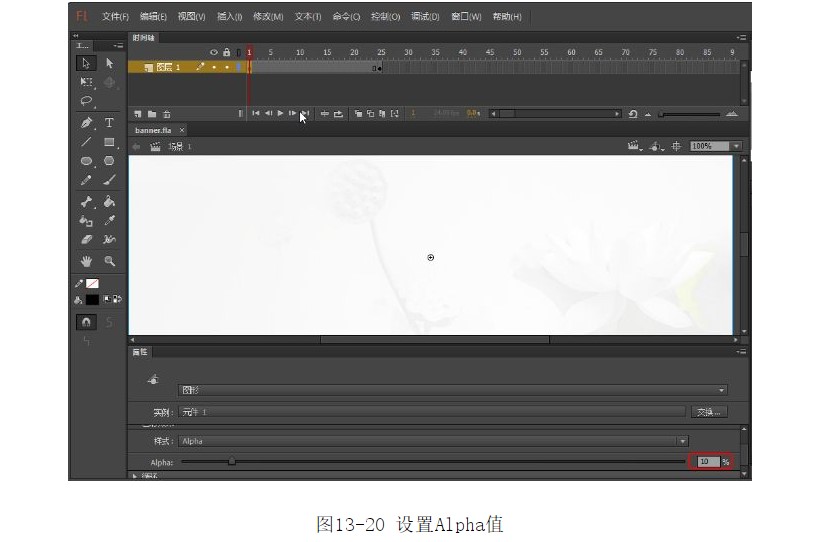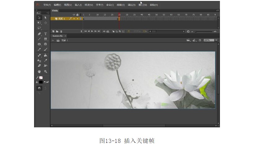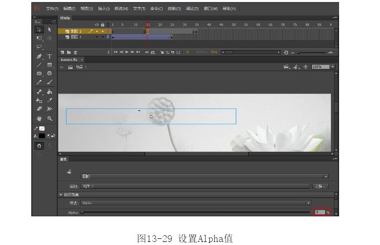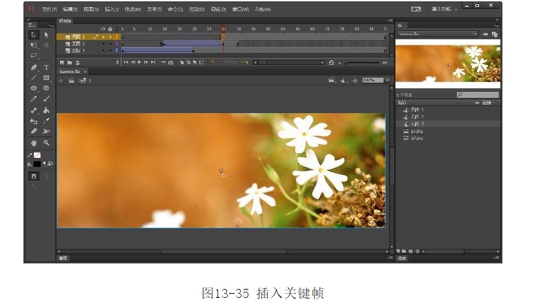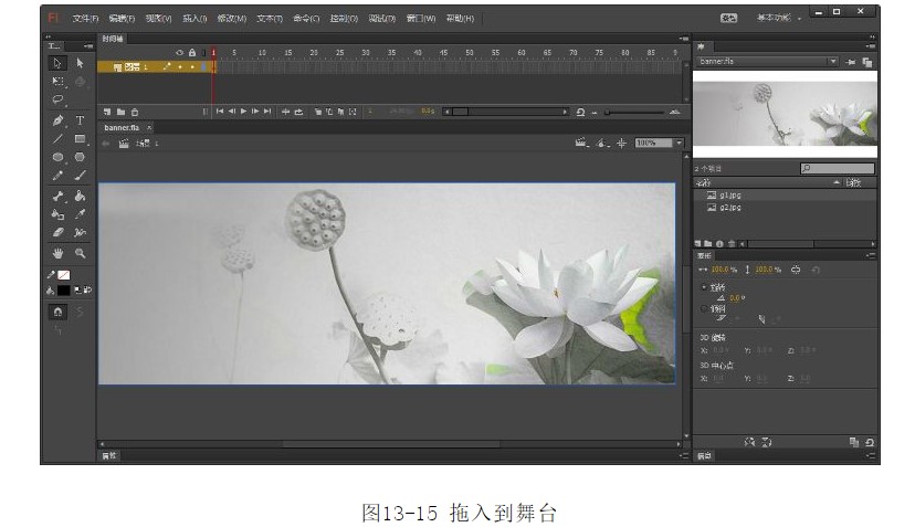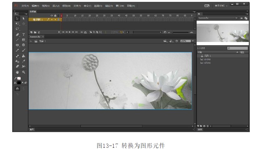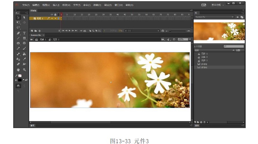 26.單擊【確定】按鈕,進(jìn)入元件3的編輯模式。從庫(kù)面板中將圖像“g2.jpg”拖入編輯區(qū),調(diào)整其位置,如圖13-33所示。