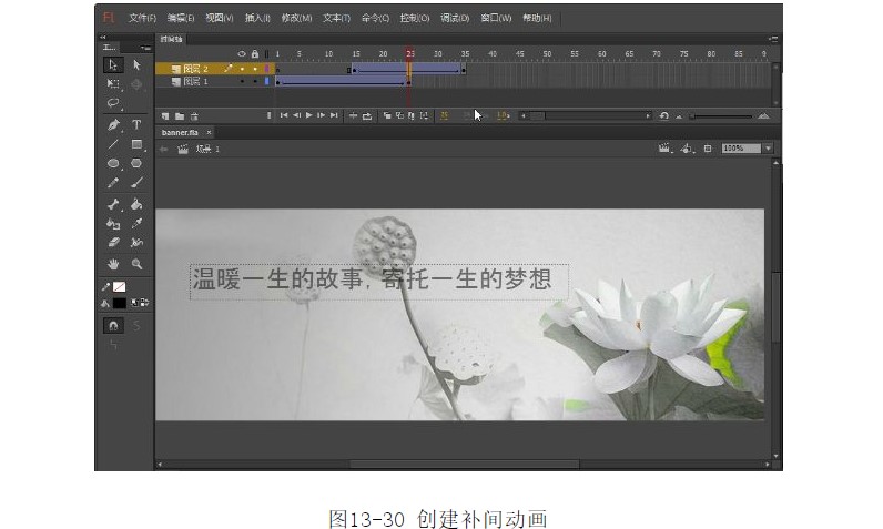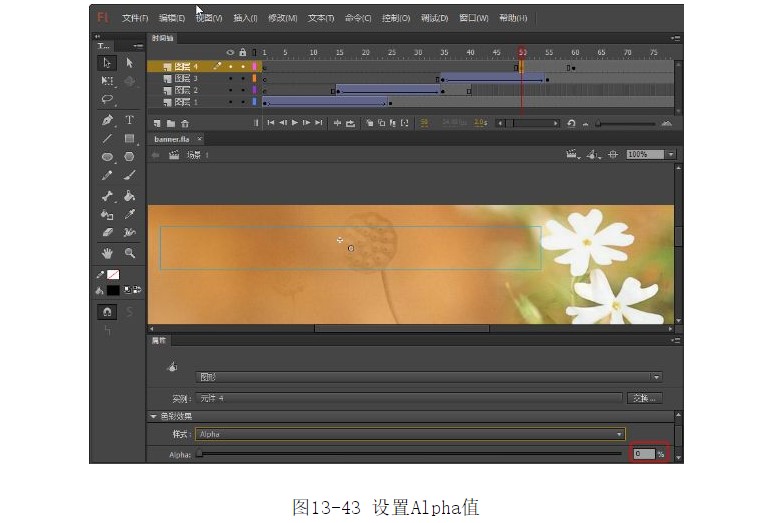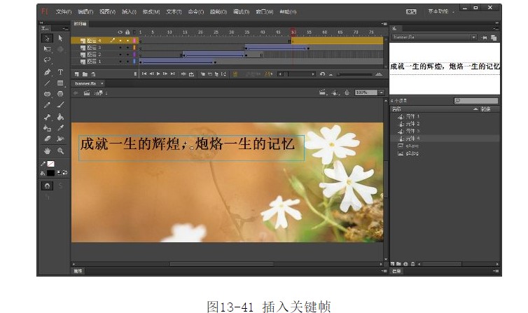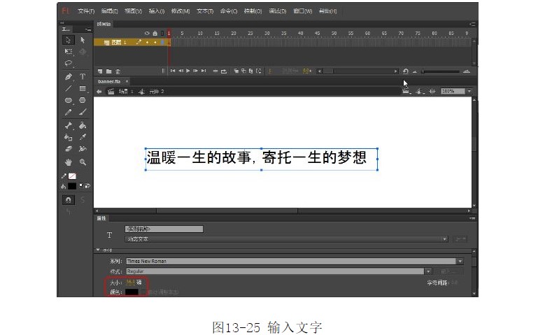 32.單擊【確定】按鈕,進(jìn)入元件4的編輯模式。選擇工具箱中的文本工具,在舞臺(tái)中輸入文字,并調(diào)整其位置,如圖13-39所示。