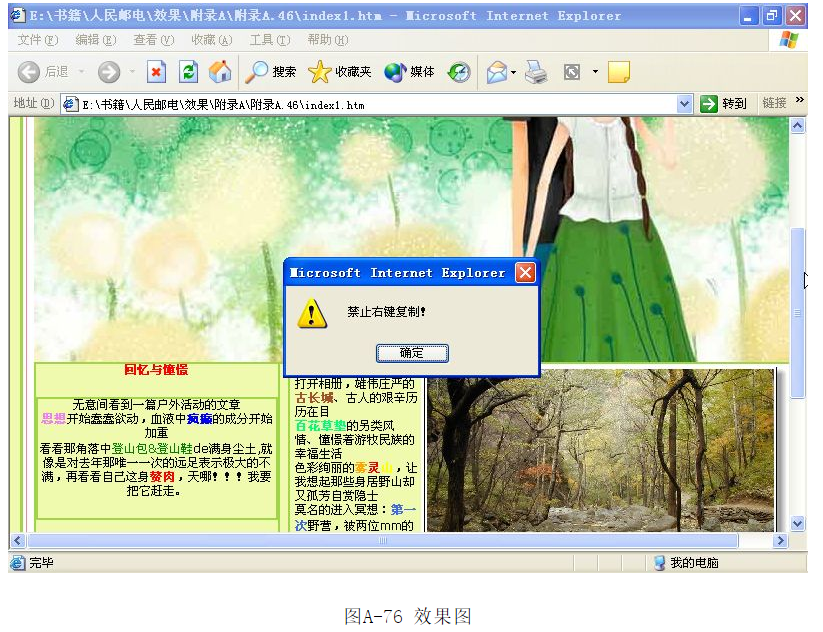 ?保存文檔,按F12鍵在瀏覽器中預(yù)覽效果,如圖A-76所示。