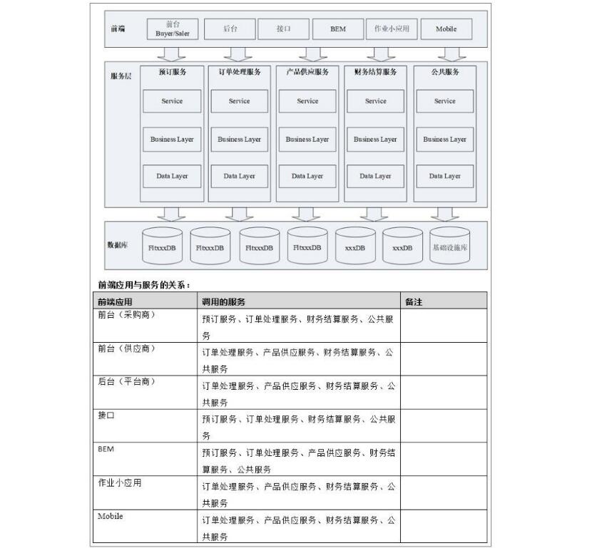 SOA規(guī)劃就是接口規(guī)劃,它的歸類與商務(wù)模型中的業(yè)務(wù)流程有對應(yīng)關(guān)系。下圖中的案例有五個服務(wù)中心:預(yù)訂服務(wù)、訂單處理服務(wù)、產(chǎn)品供應(yīng)服務(wù)、財務(wù)結(jié)算服務(wù)和公共服務(wù)。每個服務(wù)只需要實現(xiàn)一套自己的邏輯,前臺、后臺、接口、作業(yè)小應(yīng)用等都可以調(diào)用,服務(wù)的邏輯跟業(yè)務(wù)邏輯是一致的,修改代碼的時候只需要改一個地方就可以影響所有調(diào)用這服務(wù)的前端應(yīng)用。