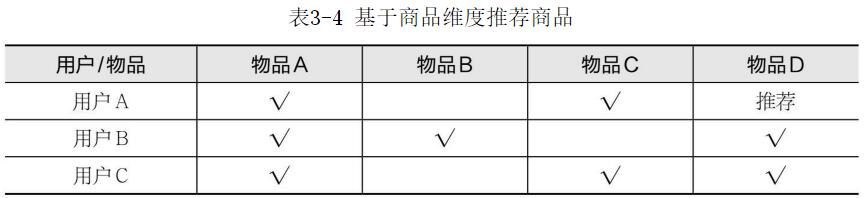 見(jiàn)表3-4。因此基于商品維度又叫作列相似性。表3-4基于商品維度推薦商品兩種維度的算法各有優(yōu)缺點(diǎn),衡量使用哪個(gè)算法的標(biāo)準(zhǔn)主要是選取參照物較少的維度。例如,電商平臺(tái)相對(duì)于龐大的用戶群體來(lái)說(shuō),商品相對(duì)固定,商品之間的關(guān)系變化也較少,因此以商品為參照物可以大大減少計(jì)算的量級(jí)和復(fù)雜度;而新聞?lì)悇t相反,用戶相對(duì)于內(nèi)容來(lái)說(shuō)更為穩(wěn)定,則使用用戶為參照物,處理起來(lái)更為便捷。同時(shí),基于商品維度的算法相對(duì)于基于用戶維度的算法,其結(jié)果集更為穩(wěn)定,但豐富性相對(duì)較低。因此,如何取舍要依賴于平臺(tái)對(duì)推薦的實(shí)際業(yè)務(wù)要求。更多的時(shí)候可以使用混合算法,即按照一定的配比,從多種算法中獲取商品,并進(jìn)行去重、加權(quán)和排序等。一般來(lái)說(shuō),在使用協(xié)同過(guò)濾算法的時(shí)候有幾個(gè)技巧。