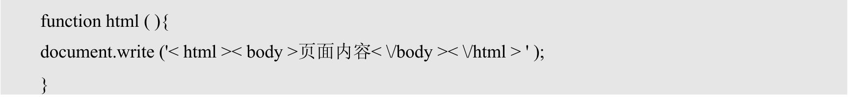 然后,主頁面只需要簡單地調(diào)用html()即可構(gòu)造出Web頁面。這種頁面只有在用戶啟用了瀏覽器的JavaScript支持之后才會顯示。如果用戶查看這種頁面的源代碼,看到的只是一個函數(shù)調(diào)用,而不會看到函數(shù)調(diào)用所返回的源代碼。