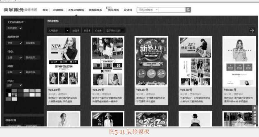 如圖5-11所示。“裝修”模板很好地解決了一些運營人員對于店鋪風(fēng)格的設(shè)計、配色把握以及整體布局的不專業(yè)性,在豐富的模板市場中可以找到適合當(dāng)前店鋪的裝修風(fēng)格,而且能夠借鑒前人的運營經(jīng)驗。裝修模板可以減少在新建活動時從o到i逐步配置的巨大工作量。直接套用模板中的內(nèi)容,進行替換、新增部分內(nèi)容,可以快速新建活動。另外,可以提供自定義頁面的復(fù)制功能,從已有的自定義頁面中復(fù)制出新頁面。由于同一家公司的運營風(fēng)格在短時間內(nèi)不會發(fā)生太大變化,每次活動頁的形式其實都差不多,提供這個功能,可以減少運營的工作量,運營人員只要在舊頁面上替換相應(yīng)的內(nèi)容就可以二次使用。[聲明]本網(wǎng)轉(zhuǎn)載網(wǎng)絡(luò)媒體稿件是為了傳播更多的信息,此類稿件不代表本網(wǎng)觀點,本網(wǎng)不承擔(dān)此類稿件侵權(quán)行為的連帶責(zé)任。故此,如果您發(fā)現(xiàn)本網(wǎng)站的內(nèi)容侵犯了您的版權(quán),請您的相關(guān)內(nèi)容發(fā)至此郵箱【qin@198bona.com 】,我們在確認后,會立即刪除,保證您的版權(quán)。