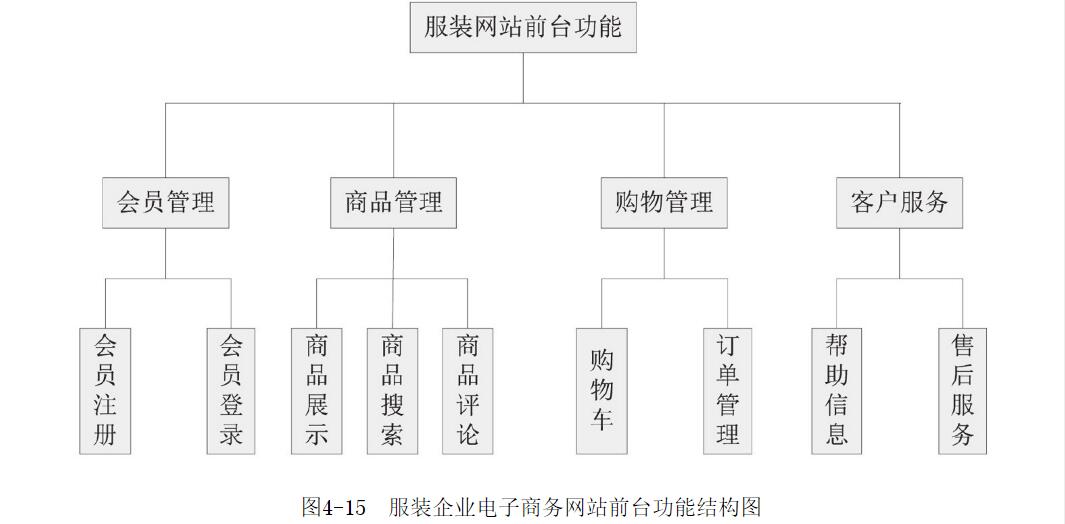 圖4-15 服裝企業(yè)電子商務(wù)網(wǎng)站前臺功能結(jié)構(gòu)圖