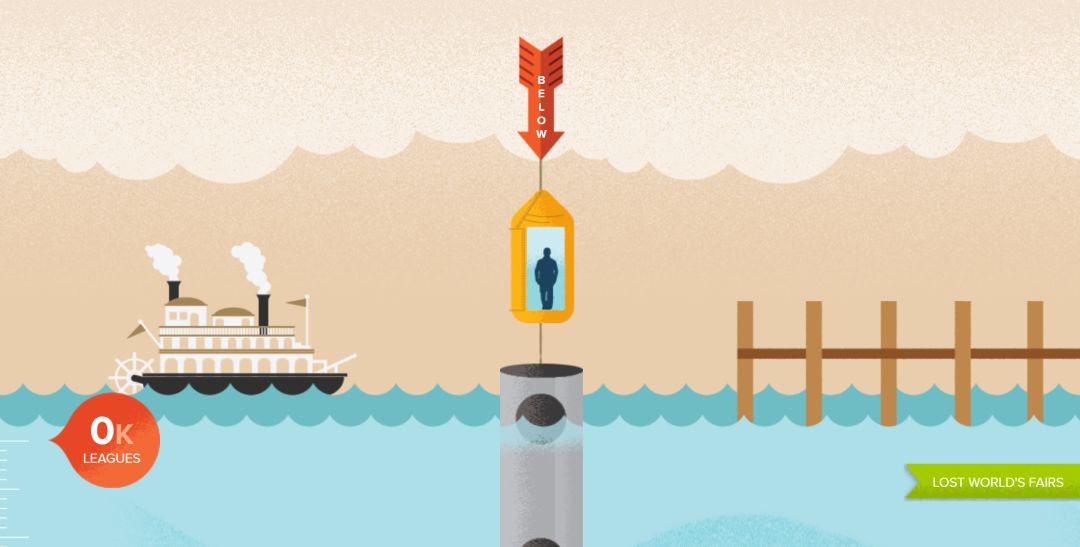 這也不是一個非常典型的視差滾動效果網站,當滾動鼠標,會有一個卡通人物進入一個神秘的管道,管道上有無數的窗口,可以讓該人物在頁面滾動時看到不同的場景。這個網站還是有一定的趣味性,看這個人物經歷所有場景并最終到達他的目的地非常有趣。