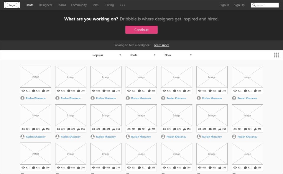 參考點:多資源多鏈接頁面布局Dribbble是一個面向創(chuàng)作家、藝術(shù)工作者、設(shè)計師等創(chuàng)意類作品的人群的社區(qū)網(wǎng)站。作為設(shè)計平臺類的佼佼者,此網(wǎng)頁設(shè)計模板很好的展示了如何處理多資源多鏈接,圖文結(jié)合,圖文鏈接的網(wǎng)頁排版模式,是一個非常值得學(xué)習(xí)和參考的優(yōu)秀模板??梢詤⒖嫉捻撁嬗校褐黜摗⒃O(shè)計師頁面、找工作頁面等。
