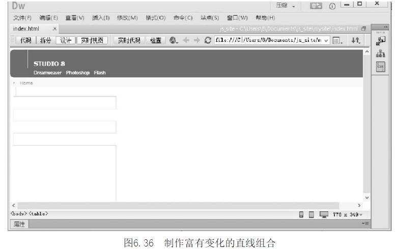 網(wǎng)站設(shè)計(jì)線條處理實(shí)操示意圖6.36制作富有變化的直線組合