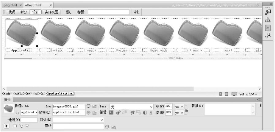 第1步,打開本站示例中的orig.html文件,另存為effect.html。設計當鼠標經(jīng)過縮略圖時,顯示翻轉圖像。