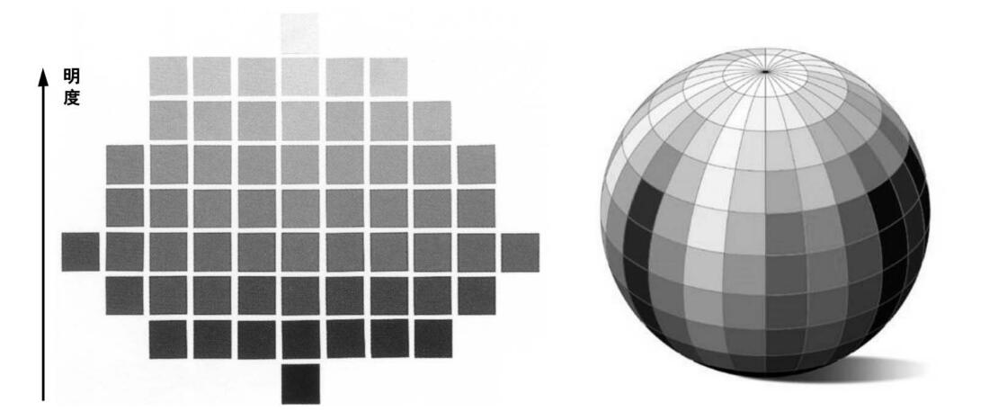 顏色可以分為非彩色和彩色兩大類。非彩色指黑色、白色和各種耀淺不的灰色,而其他所有顏色均屬于彩色。從心理學(xué)和視覺的角度出發(fā),彩色具有3個屬性:色相、明度、純度(彩度)。明度表現(xiàn)了色彩的源淺,色相表現(xiàn)了色彩的種類,純度表現(xiàn)了色彩的鮮艷程度。