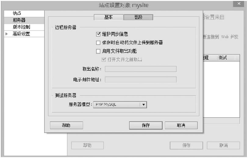 第5步在【站點設置對象mvsitel對話框中選擇【高級】選項卡,設置服務器的其他信息,如圖13.6所示。