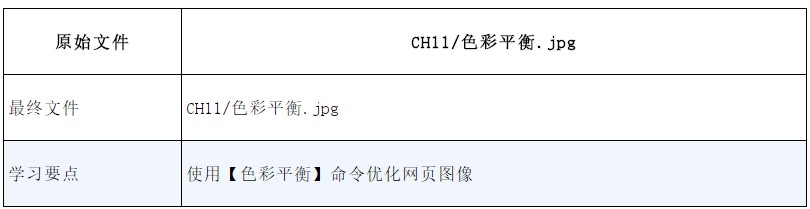 原始文件CH11/色彩平衡.jpg最終文件CH11/色彩平衡.jpg學(xué)習(xí)要點(diǎn)使用【色彩平衡】命令優(yōu)化網(wǎng)頁(yè)圖像