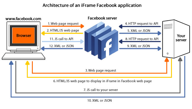 在企業(yè)應(yīng)用中實(shí)現(xiàn)這個(gè)并不難。這其中的秘訣在于:當(dāng)用戶通過(guò)Facebook訪問(wèn)某個(gè)第三方應(yīng)用的時(shí)候,Facebook實(shí)際上通過(guò)后臺(tái)去訪問(wèn)了第三方應(yīng)用,將當(dāng)前用戶的信息(以及好友信息)通過(guò)HTTP POST送到第三方應(yīng)用指定的服務(wù)網(wǎng)址,然后將應(yīng)用的HTML結(jié)果渲染到當(dāng)前頁(yè)面中。某種意義上說(shuō),這種技術(shù)本質(zhì)上是一種服務(wù)器端的mashup.