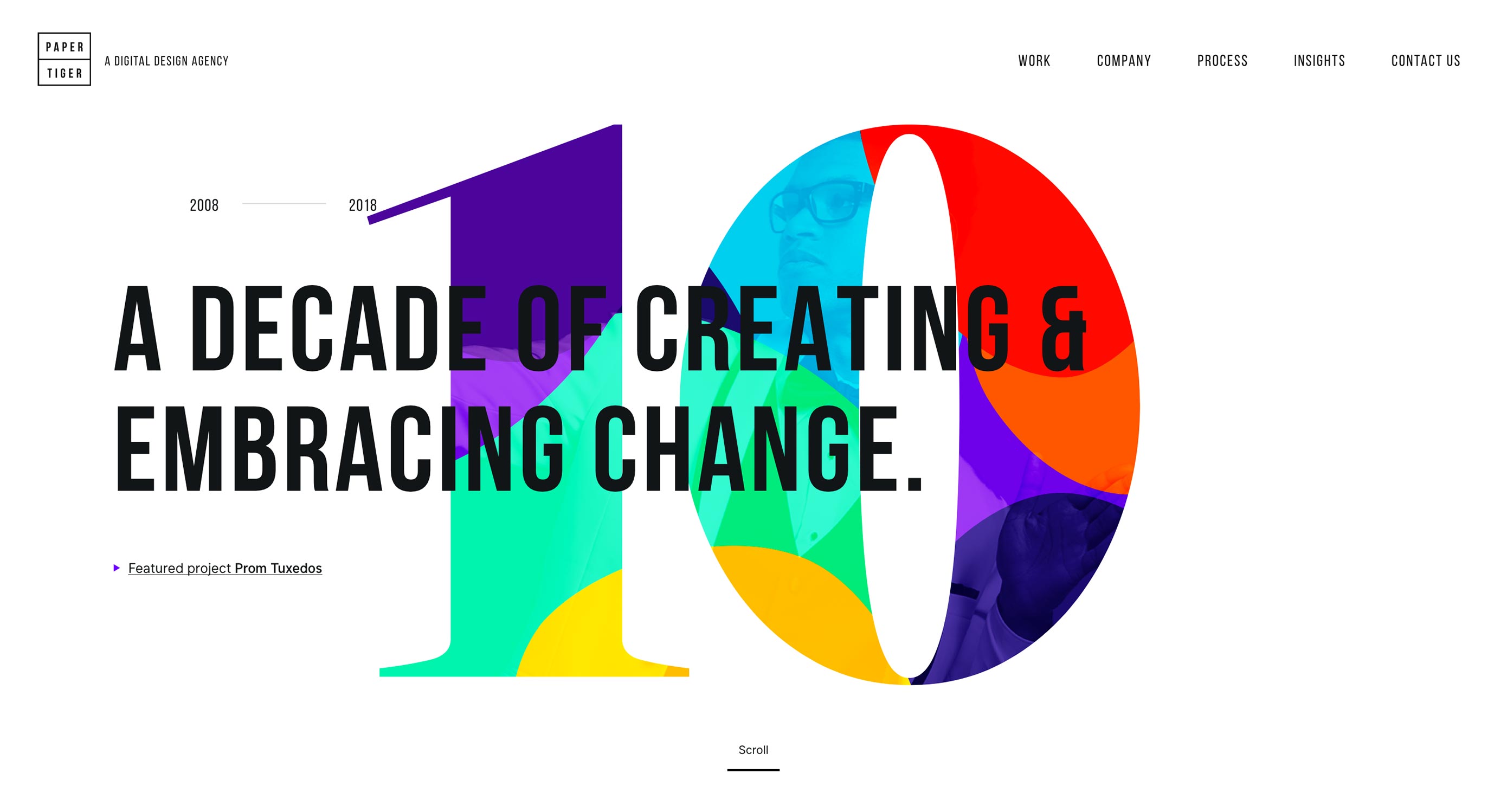 Paper Tiger 采用了近乎經(jīng)典的極簡設(shè)計,網(wǎng)站中間的數(shù)字 10 采用了豐富且鮮艷的色彩來呈現(xiàn),在大面積的留白之下創(chuàng)造出視覺焦點,又不顯得過于突出。