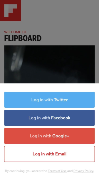 Flipboard 允許用戶使用使用社交帳號登錄。