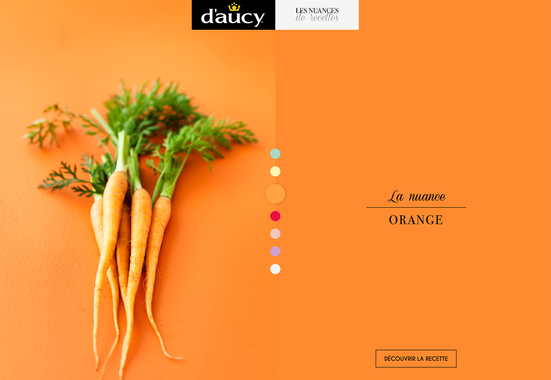 D’Aucy 在進行分屏設(shè)計的時候,選擇了更加微妙的策略。左側(cè)僅有圖片,搭配著有紋理的背景;右側(cè)的背景選擇了近似的色彩卻沒有加上紋理,僅有文本標題。兩者在保持近似一致的視覺設(shè)計的同時,又巧妙地呈現(xiàn)出差異性。