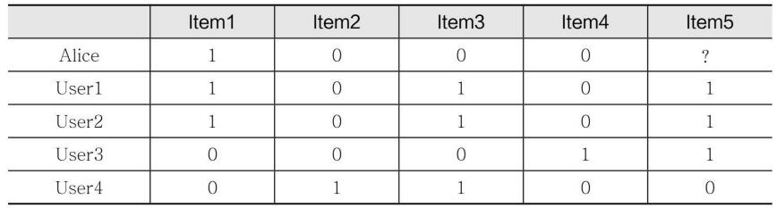 ●置信度(Confidence):買過商品A、同時買過商品B的人數(shù)/買過商品A的人數(shù)。計算公式:關(guān)聯(lián)度=Support×Confidence。下面我們舉一個例子,看一下算法是如何運行的。Alice購買了商品item1,這個時候我們想計算item5是否應(yīng)該推薦。根據(jù)公式,我們來計算一下支持度和置信度。支持度Support=2/4,置信度Confidence=2/2,需要說明的是,計算時要除去Alice本人。這樣我們可以得到Support=0.5,Confidence=1,因此item5對于item1的關(guān)聯(lián)度就是0.5×1=0.5,