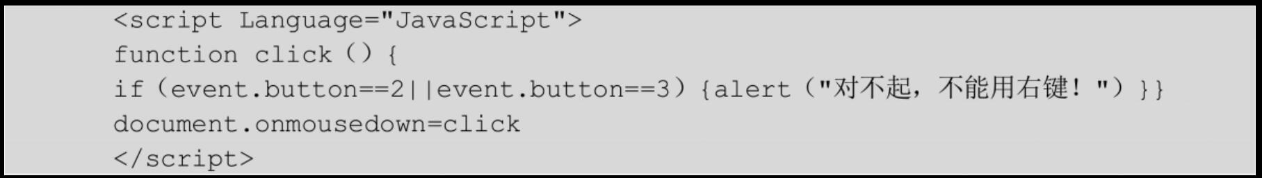 (2)屏蔽鼠標右鍵。在所需保護的頁面文件(上例中為index.html文件)中加入以下代碼(當右鍵被單擊時將出現(xiàn)圖9-1所示提示框)。