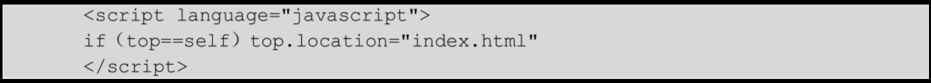 這段代碼將提供跳回功能,當瀏覽器試圖單獨讀取該文件時,文件將自動返回該文件,使瀏覽器循環(huán)讀取該文件,無法看到該頁源文件,但在框架文件中打開時能正常讀取,從而起到保護該頁面的作用。在完成以上三個步驟,該首頁源代碼將不能被瀏覽者在網(wǎng)上獲得。