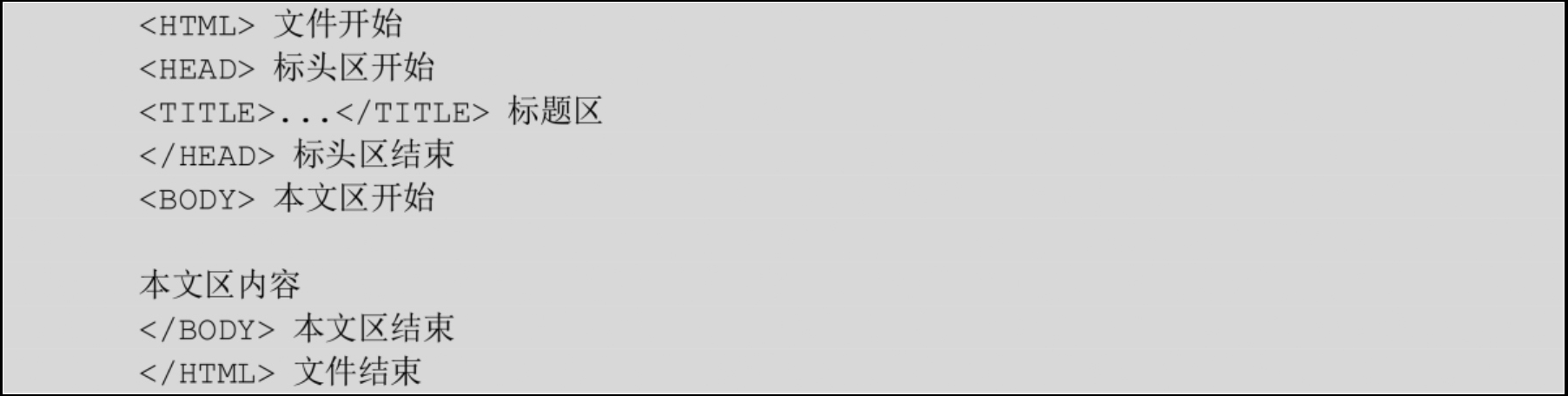 <HEAD>:標頭區(qū),記錄文件基本資料,如作者、編寫時間。