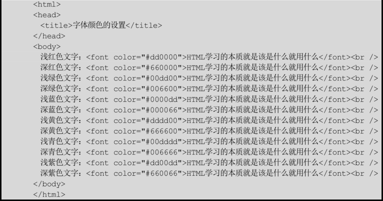 代碼2.1 字體顏色的設(shè)置:font_color.htm。