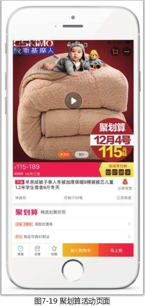 網(wǎng)站制作公司提醒聚劃算頁面是所有頁面中對(duì)于功能性營銷要求最強(qiáng)的,因?yàn)樗诙虝r(shí)間內(nèi)承接大量的流量進(jìn)入頁面,如果頁面轉(zhuǎn)化率能夠拉高,對(duì)于銷售額的提升效果就非常明顯。當(dāng)大活動(dòng)來臨時(shí),聚劃算頁面應(yīng)該增強(qiáng)促銷感與緊迫感,以提升消費(fèi)者的購買欲。深圳網(wǎng)站制作公司下面以愛斯基摩人家紡聚劃算活動(dòng)為例,如圖7-19所示,商品是冬被,時(shí)間又正值冬天,因此如何突出冬被的保暖這一賣點(diǎn)是一個(gè)難題。整個(gè)頁面文案以“保暖”為主題,以圓形作為頁面的設(shè)計(jì)元素。