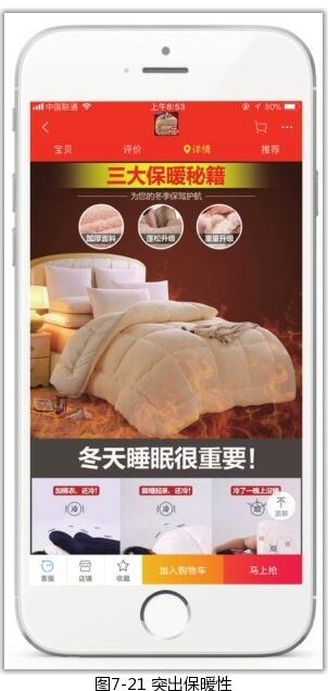 第二張圖片通過介紹商品的優(yōu)點(diǎn)來突出冬被的保暖性能,如圖7-21所示。