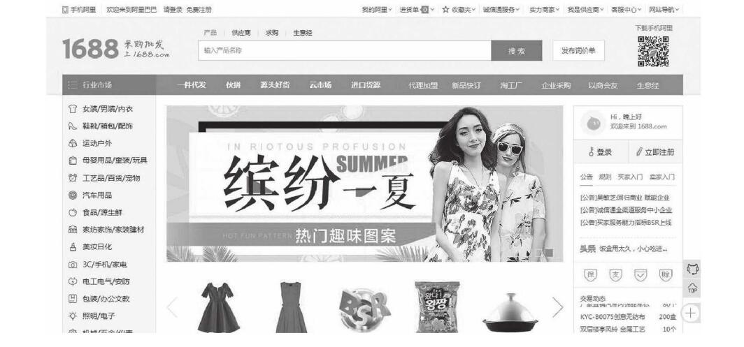 服裝企業(yè)B2B商務(wù)模式網(wǎng)站的構(gòu)建,服裝企業(yè)B2B商務(wù)模式網(wǎng)站的構(gòu)建與運營可以借助阿里巴巴、慧聰網(wǎng)等第三方平臺。阿里巴巴(www.1688.com)是目前B2B商務(wù)模式中領(lǐng)先的企業(yè),它以批發(fā)和采購業(yè)務(wù)為核心,主要服務(wù)于中小企業(yè)。服裝企業(yè)在阿里巴巴第三方平臺上構(gòu)建與運營網(wǎng)站,其過程主要由以下四個步驟組成:第一步:開店準備。在瀏覽器地址欄輸入http://www.1688.com,進入阿里巴巴平臺首頁,如圖4-34所示。然后點擊首頁左上角的【免費注冊】,進行企業(yè)賬號注冊。