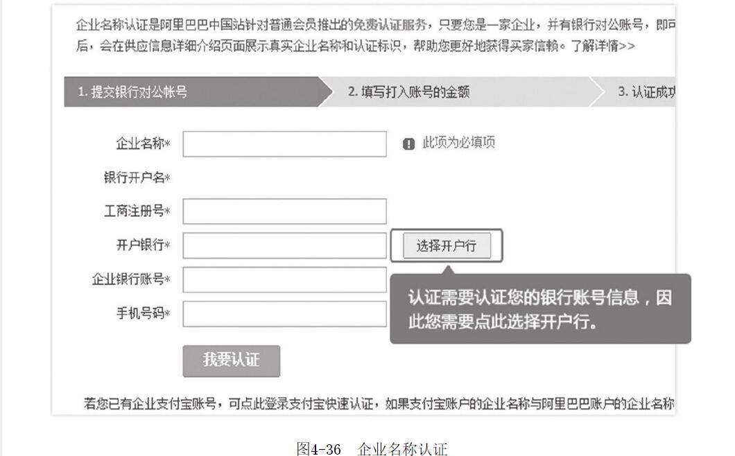 圖4-36展示的是企業(yè)名稱認證的主要信息填寫頁面。好了,