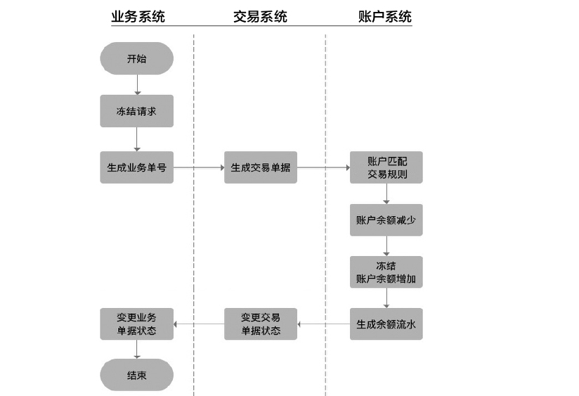 按照流程先生成對(duì)應(yīng)的業(yè)務(wù)單據(jù),然后提交給交易系統(tǒng)進(jìn)行交易單據(jù)流水的生成,賬戶系統(tǒng)根據(jù)交易系統(tǒng)提供的單據(jù),按照規(guī)則進(jìn)行增加余額的操作,完成后通知上游系統(tǒng)變更狀態(tài)。