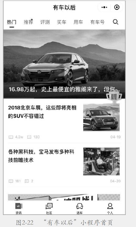 所示為“有車以后”小程序的朋友圈廣告,用戶只需長按識別圖中的二維碼,便可以進入如圖2-22所示