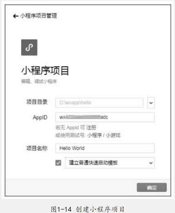 單擊“小程序項目”,就可以創(chuàng)建一個新的小程序項目,如圖1-14所示