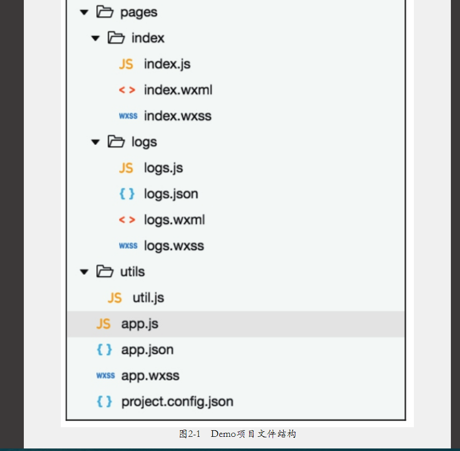小程序開發(fā)公司在前面相關文章中介紹過小程序賬號申請、域名綁定 等。本文小程序開發(fā)公司主要介紹小程序開發(fā)時關于文件配置。微信小程序在快速創(chuàng)建的時候就提供了一個簡單的Demo項目,項目文件結構如圖2-1所示。