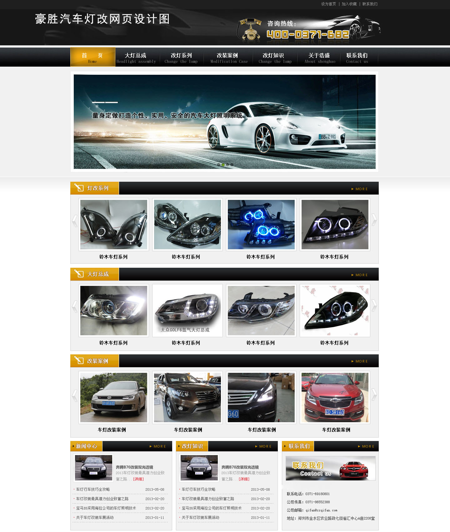 網(wǎng)頁設(shè)計(jì):豪勝燈改致力于汽車大燈升級(jí)與改裝和大燈修復(fù)翻新,秉承嚴(yán)謹(jǐn)、安全、合理的升級(jí)改裝思路,形成一套簡潔、大方、實(shí)用的改裝升級(jí)風(fēng)格,汽車原廠大燈總成及配件批發(fā),經(jīng)過8年的發(fā)展,讓中低端品牌的車享有高檔豪華汽車的燈光特性及車燈美感,目前豪勝燈改位于鄭州市金水區(qū)汽配大世界十六排北九號(hào),豪勝燈改致力于汽車燈改升級(jí)的研究和改裝,讓中低端品牌的車享有高檔豪華汽車的燈光特性及車燈美感,受到廣大車友的一致好評(píng)。