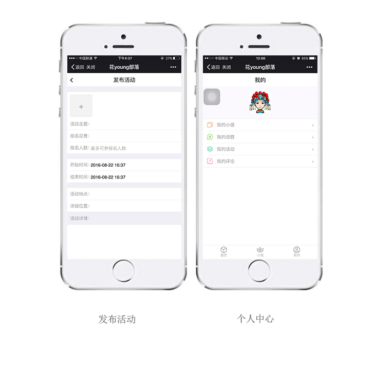 花樣部落是一款根據(jù)客戶需求,同時(shí)自身多年開發(fā)的經(jīng)驗(yàn)為其定制的小程序,其主要功能有創(chuàng)建小組,發(fā)布評(píng)論,添加活動(dòng)等。
