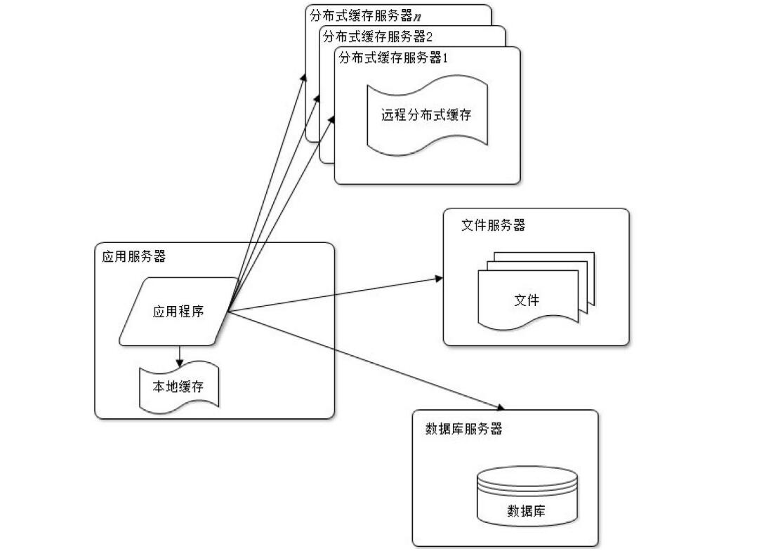 3.使用緩存改善網(wǎng)站性能網(wǎng)站訪問(wèn)特點(diǎn)和現(xiàn)實(shí)世界的財(cái)富分配一樣遵循二八定律:80%的業(yè)務(wù)訪問(wèn)集中在20%的數(shù)據(jù)上。淘寶買家瀏覽的商品集中在少部分成交數(shù)多、評(píng)價(jià)良好的商品上;百度搜索關(guān)鍵詞集中在少部分熱門詞匯上;只有經(jīng)常登錄的用戶才會(huì)發(fā)微博、看微博,而這部分用戶也只占總用戶數(shù)目的一小部分。既然大部分的業(yè)務(wù)訪問(wèn)集中在一小部分?jǐn)?shù)據(jù)上,那么如果把這一小部分?jǐn)?shù)據(jù)緩存在內(nèi)存中,是不是就可以減少數(shù)據(jù)庫(kù)的訪問(wèn)壓力,提高整個(gè)網(wǎng)站的數(shù)據(jù)訪問(wèn)速度,改善數(shù)據(jù)庫(kù)的寫入性能了呢?網(wǎng)站使用的緩存可以分為兩種:緩存在應(yīng)用服務(wù)器上的本地緩存和緩存在專門的分布式緩存服務(wù)器上的遠(yuǎn)程緩存。本地緩存的訪問(wèn)速度更快一些,但是受應(yīng)用服務(wù)器內(nèi)存限制,其緩存數(shù)據(jù)量有限,而且會(huì)出現(xiàn)和應(yīng)用程序爭(zhēng)用內(nèi)存的情況。遠(yuǎn)程分布式緩存可以使用集群的方式,部署大內(nèi)存的服務(wù)器作為專門的緩存服務(wù)器,可以在理論上做到不受內(nèi)存容量限制的緩存服務(wù),如圖1.3所示。