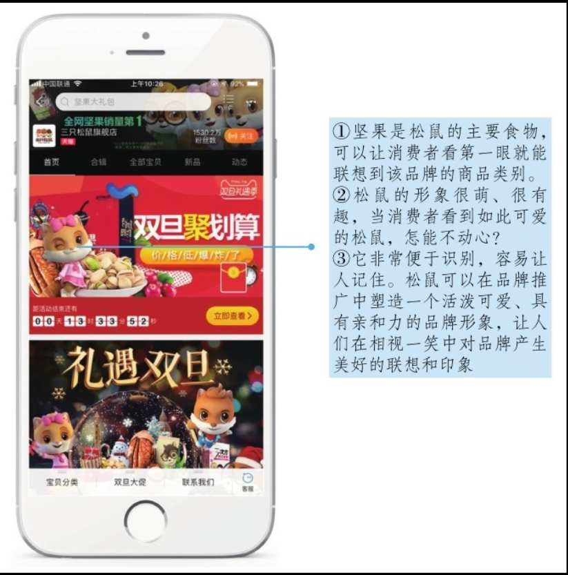 網(wǎng)站建設公司認為關于Ⅵ最核心的功能在于識別,所以不能表現(xiàn)行業(yè)屬性、品牌特征的品牌Ⅵ設計是不具有識別意義的。每個移動端店鋪都有自己的特點與個性,賣家需要做的就是找到專屬于自己店鋪的服務理念與店鋪文化,創(chuàng)建富有特色的店鋪形象,使自己店鋪的品牌Ⅵ獨一無二,便于消費者更為精準地辨別與認知。網(wǎng)站建設公司以三只松鼠旗艦店店鋪首頁如圖5-14所示作為案例,其中就體現(xiàn)了品牌Ⅵ的獨一性。